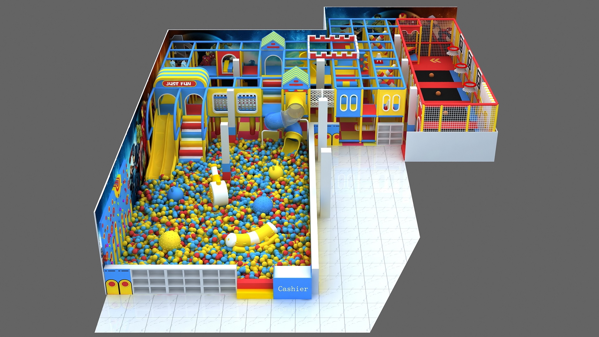 This equipment is customized by a customer from Kyrgyzstan, with a usable area of 3000-4000 sqm. The equipment mainly includes karting, a ninja course, a trampoline, a naughty castle, an inflatable castle, etc. The amusement area is diverse and suitable for players of all ages.