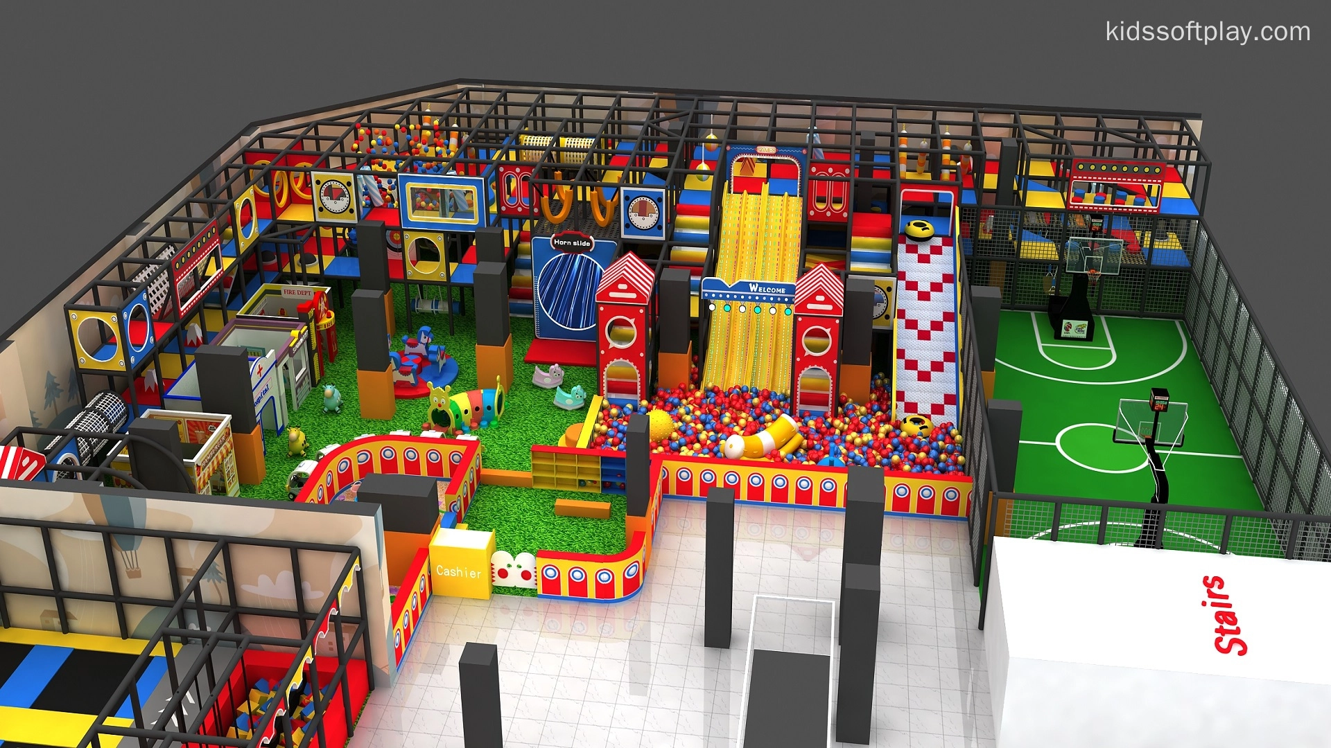 Indoor playgrounds can start from 50–100 m², while trampoline parks generally require at least 300 m² for a functional layout.