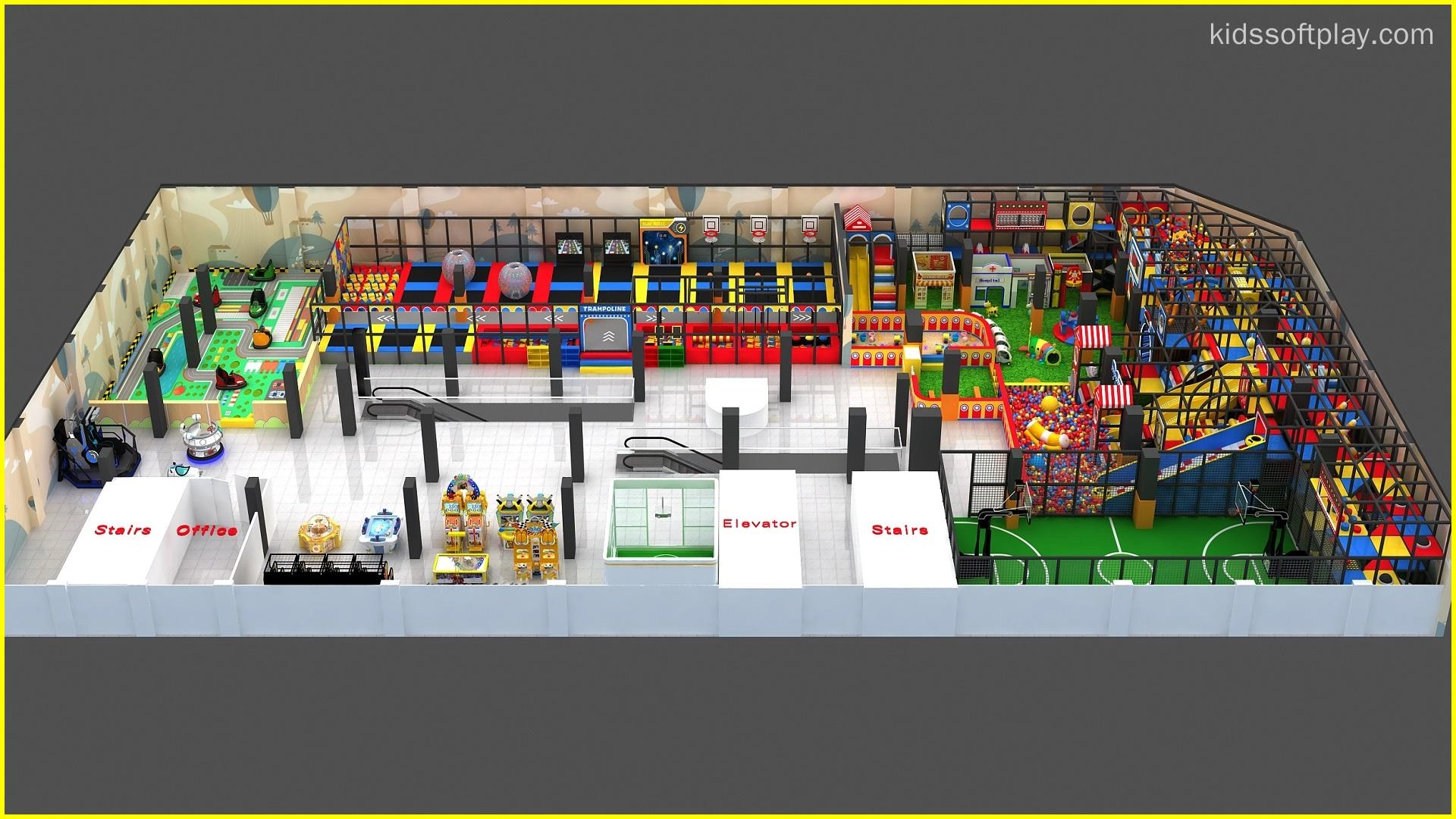 This equipment is customized by a customer from Kyrgyzstan, with a usable area of 3000-4000 sqm. The equipment mainly includes karting, a ninja course, a trampoline, a naughty castle, an inflatable castle, etc. The amusement area is diverse and suitable for players of all ages.