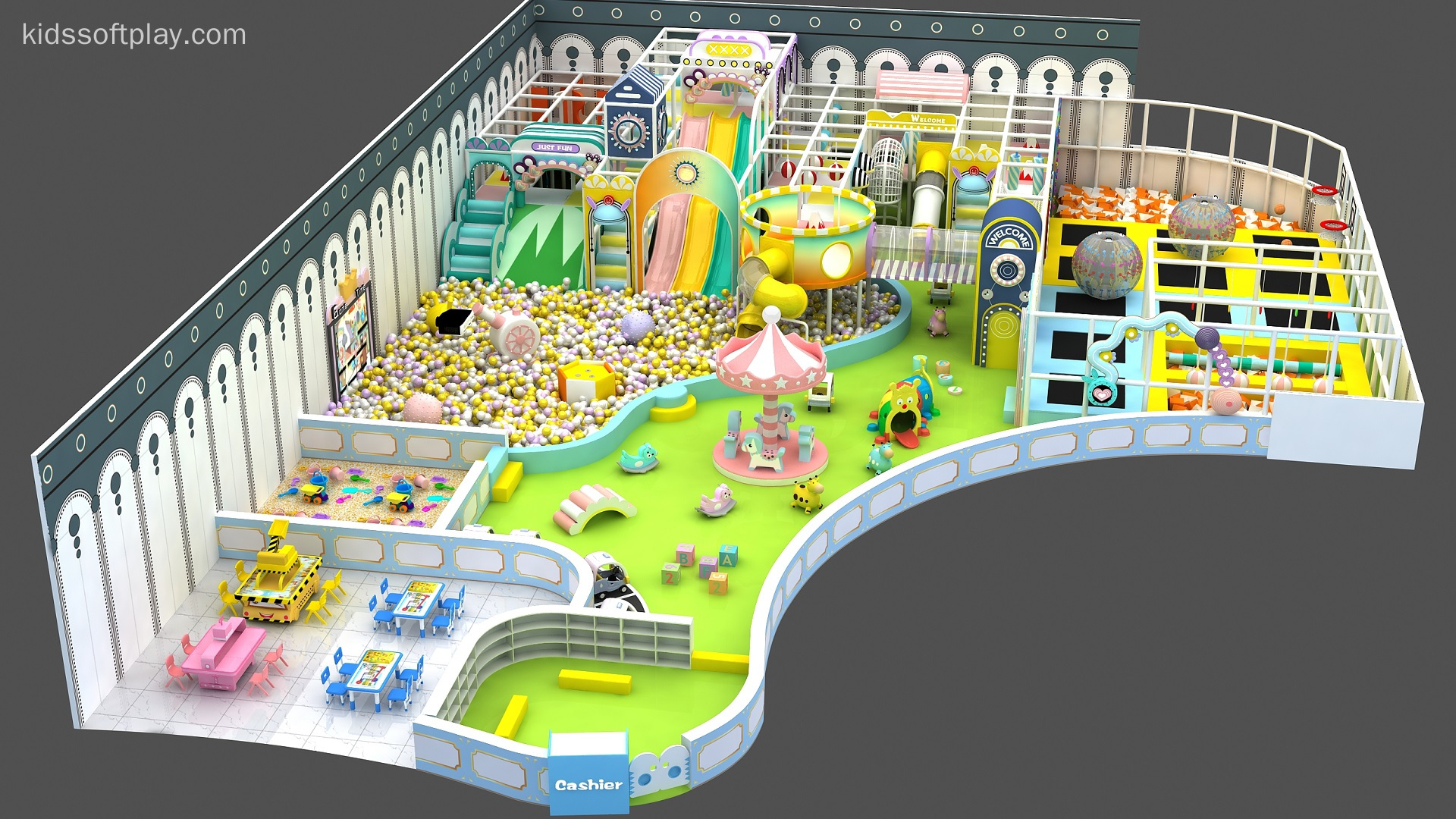 - Age-Appropriate Zones: Separate areas for toddlers and preschoolers to play safely and confidently.