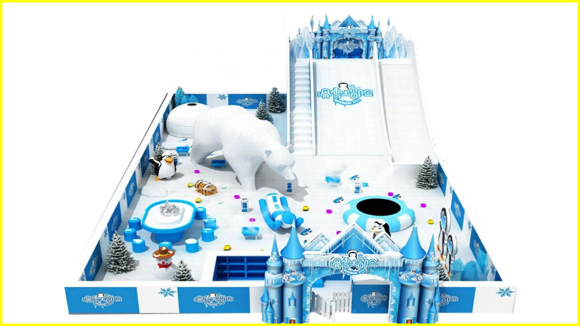 The snow-themed series contains climbing nets, slides, trampolines, and wintry decorations. Kids frolic in a fairy tale glacier; it can boost their coordination, sparking imagination, enjoy great fun and growing through play.
