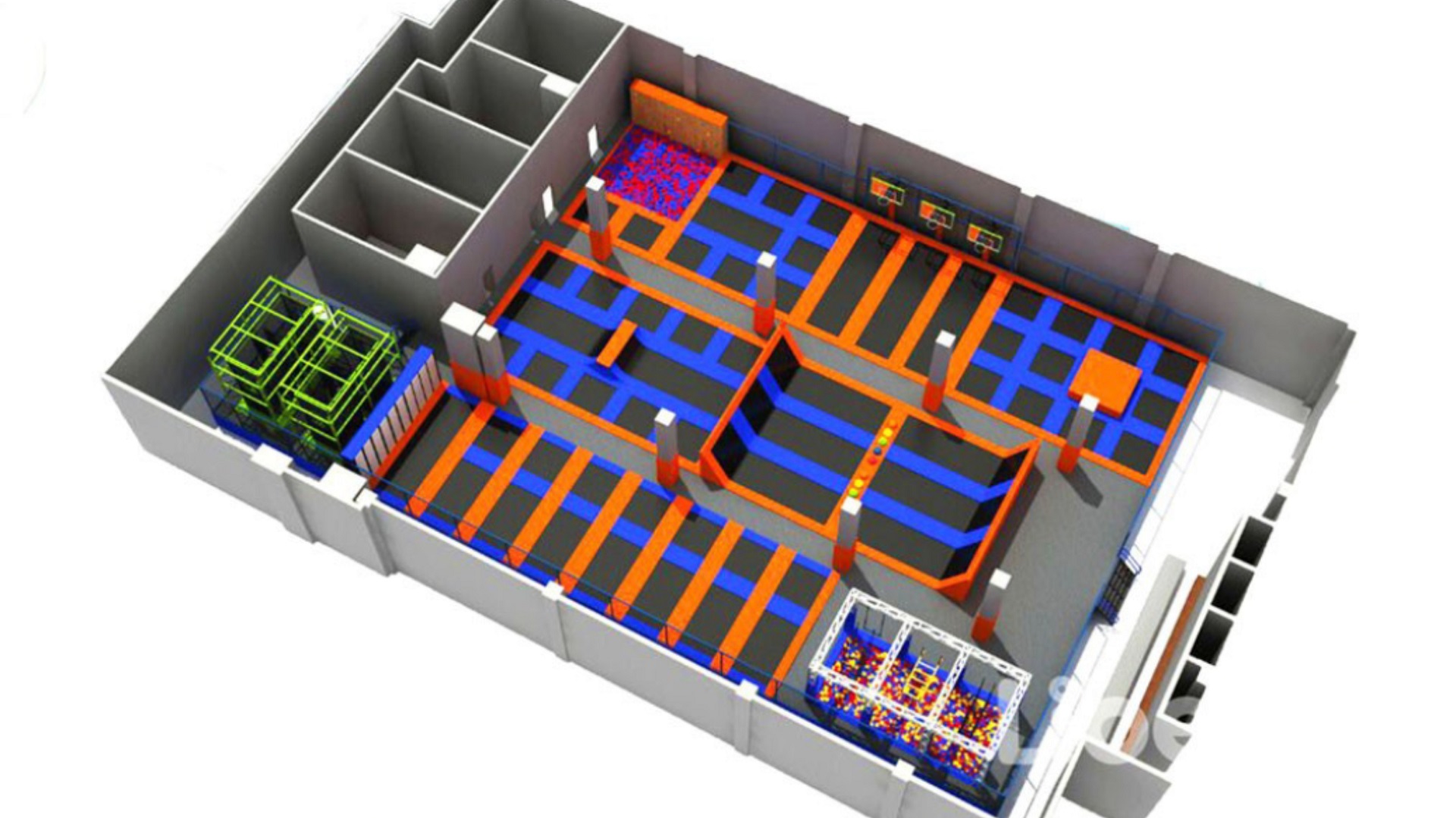 The maximum bearing capacity for our trampoline park is:static bearing 600kg per square meter,dynamic bearing 180kg per square meter.