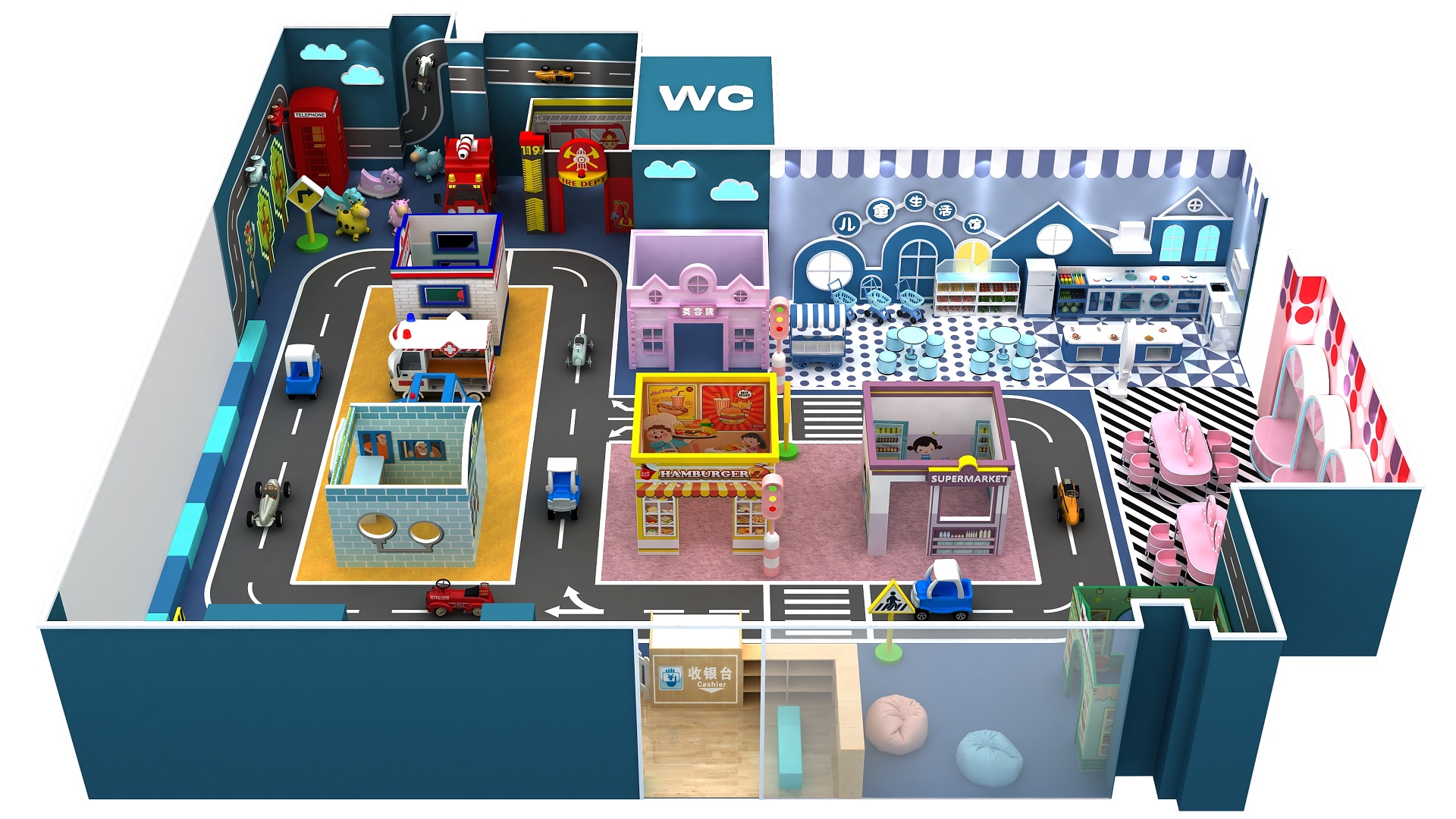 This equipment is customized by a customer from Kyrgyzstan, with a usable area of 3000-4000 sqm. The equipment mainly includes karting, a ninja course, a trampoline, a naughty castle, an inflatable castle, etc. The amusement area is diverse and suitable for players of all ages.